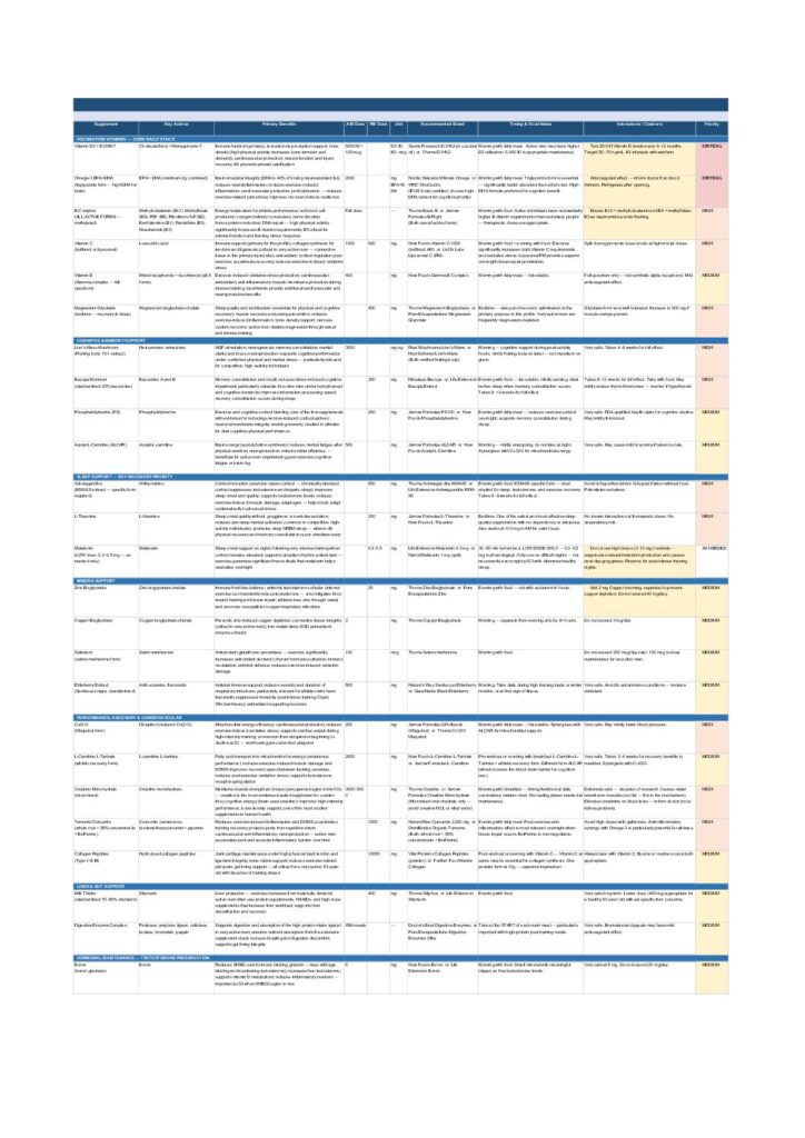 The supplements list